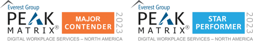 Recognized as a Major Contender and a Star Performer in Digital Workplace Services PEAK Matrix Assessment 2023, NA. (Star Performer recognition based on year-over-year performance).